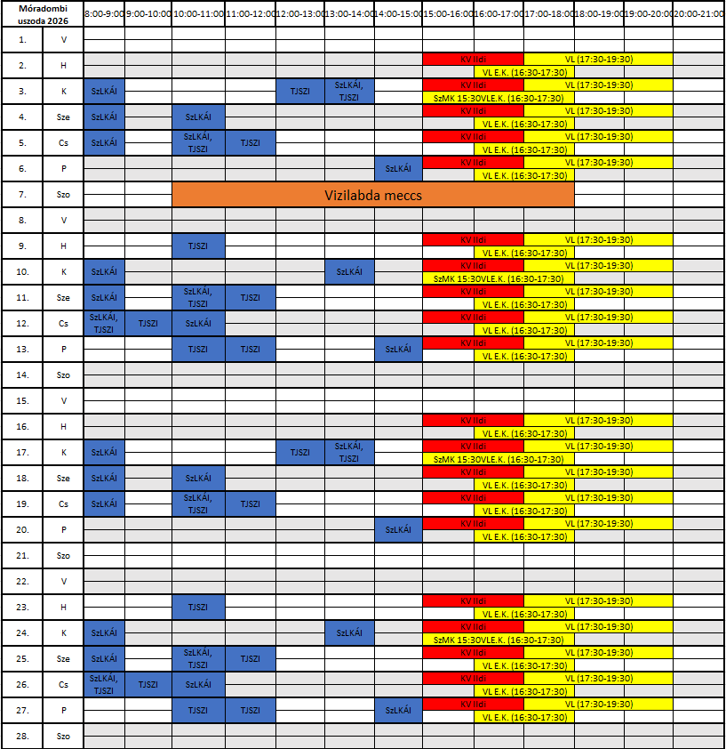 Kedves vendégeink! Felhívjuk figyelmüket, hogy a medencefoglaltság a hónap folyamán változhat!Megértésüket köszönjük! Medencefoglaltság-2026-februárLetöltés